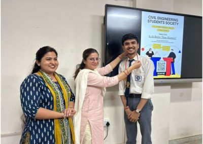 Our aim from CESS is to give overview about real life problems and importance of team working, team management,presentation skills to students through various innovative activities etc.It has been observed that student are taking keen interests in various activities of CESS. They are trying to inculcate new skills and knowledge about real life problems.