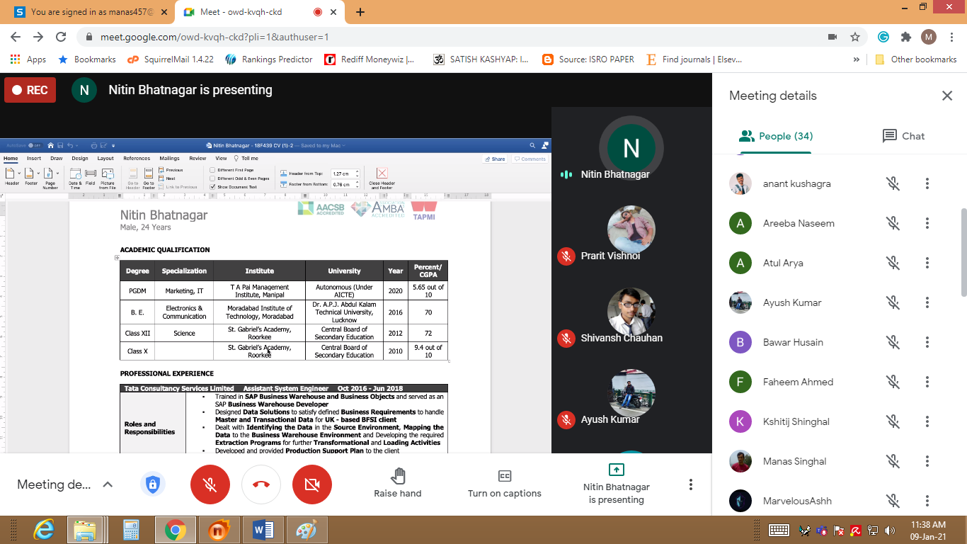 | 2 | 09-01-2021 | Data Analytics Consultant, Infosys, Bangalore | The Way Forward | Mr. Nitin Bhatnagar |