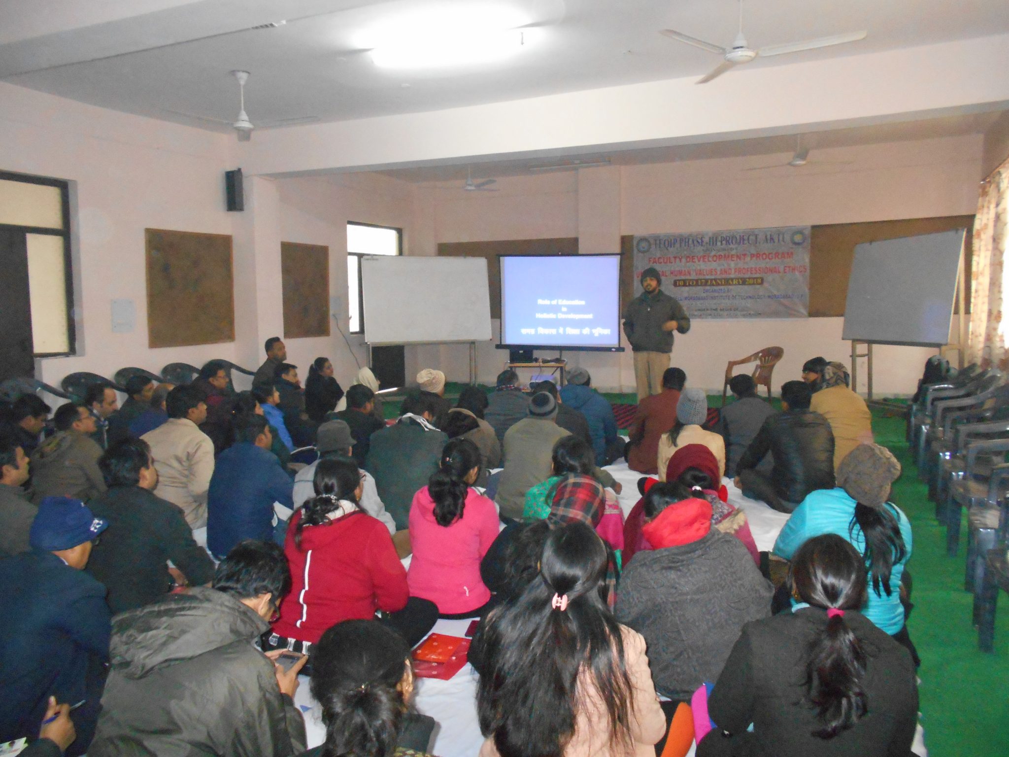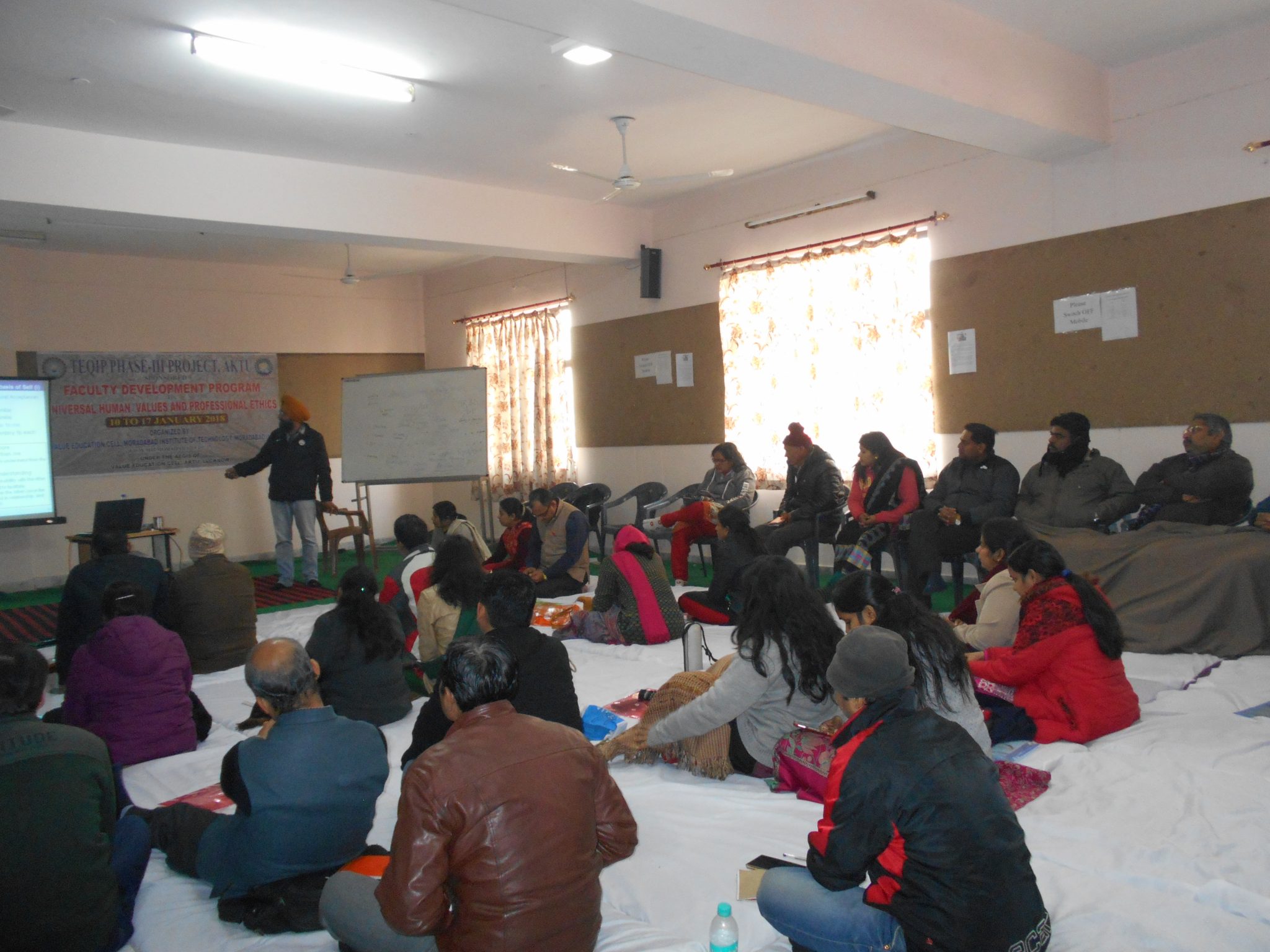 • FDP/Workshop (Level 1) on “Universal Human Values & Professional Ethics” sponsored by TEQIP-III & Dr. APJ Abdul Kalam Technical University, Lucknow, during 10-17 January 2018.