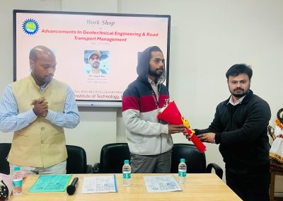Civil department has organized one day workshop on “Advancements in Geotechnical Engineering and Road Transport Management” on 11Dec.2024 in which chief guest were Dr. Manojit Samantha, Chief Scientist, CSIR-CBRI, Roorkee& Shri Gopal Das, Research Associates, CSIR-CBRI, Roorkee & Shri Sahil Bhatnagar, Engineer, State Urban Development Agency, Uttar Pradesh, Ministry of Housing and Urban Affairs.