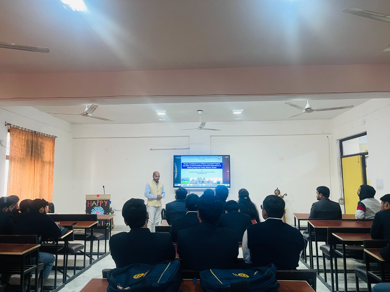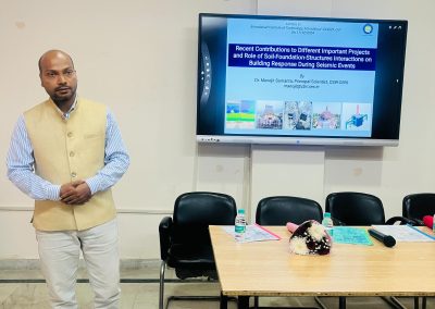 Students of all streams were participated in one day workshop and learn”Role of Soil-Foundation Structure in Building Response during Seismic Events” in which he highlighted various important projects and their role.